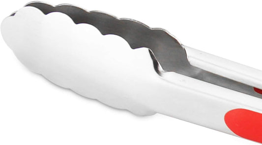 304 Stainless Steel Kitchen Cooking Tongs, 9" and 12" Set of 2 Sturdy Grilling Barbeque Brushed Locking Food Tongs with Ergonomic Grip, Red