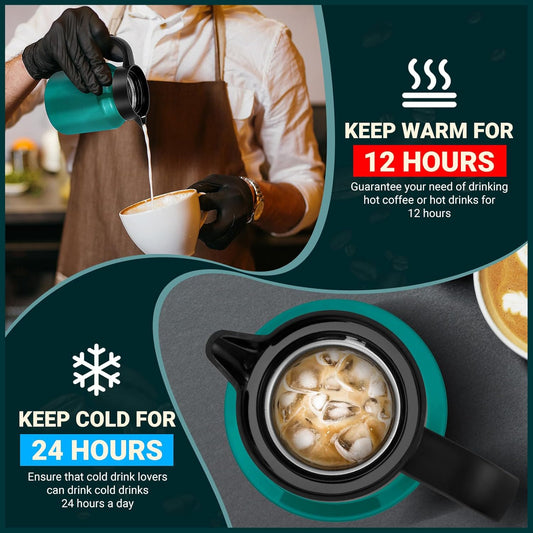 34Oz Thermal Coffee Carafe for Hot/Cold, Stainless Steel Thermos Carafes for Hot Liquids, Dustproof Insulated Hot Water Carafe for Party/Home,Agave Teal