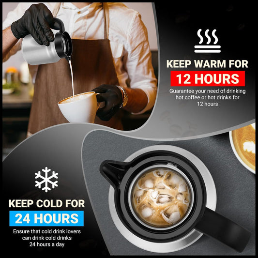 34Oz Thermal Coffee Carafes For Keeping Hot/Cold, Stainless Steel Coffee Carafe, Dustproof Insulated Water Carafe for Party/Home,Black