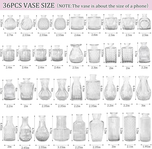 36Pcs Bud Vases Set Small Vintage Glass Bottles Clear Bud Vases in Bulk Multiple Shape Cute Glass Vases for Rustic Wedding Centerpieces Table Decorations and Home Decor(Clear)