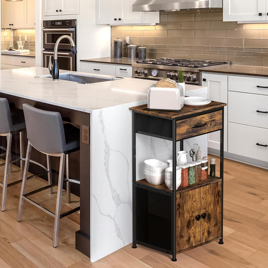 4-Tier Small Coffee Bar with Storage,Kitchen Stand, Farmhouse-Style Coffee Bar with Storage Featuring 2-Door Cabinet for Living Room,Kitchen (Rustic Brown)