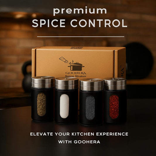 4-Piece Premium Stainless Steel Salt and Pepper Shakers Set – Adjustable Pour Holes Spice Dispenser for Salt, Sugar, Cinnamon, and Pepper – Stylish Kitchen Seasoning and Spice Shaker Set (Black)