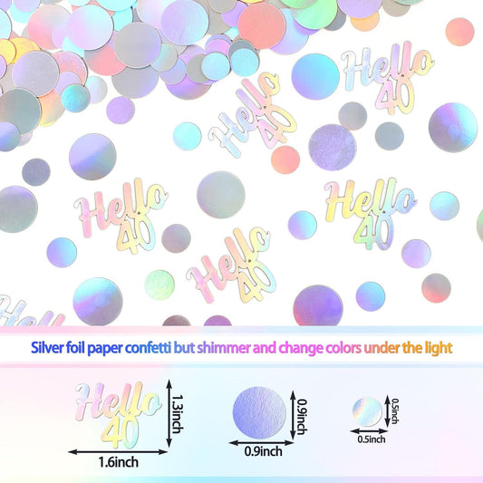 40th Birthday Confetti for Table Iridescent Birthday Party Decorations for Her Circle Dots Hello 40 Women Forty Years Old Birthday Table Scatters Decor Anniversary Party Supplies 300PC