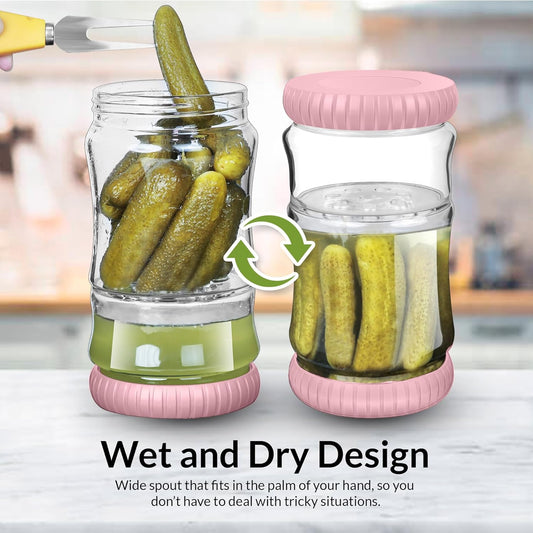 40oz Glass Pickle Jar with Strainer Flip - Pickle Storage Container with Airtight Lid, BPA-Free, Dishwasher Safe, Fermentation Hourglass Jar for Kimchi, Olives, Jalapeno, Gherkins (Pink)