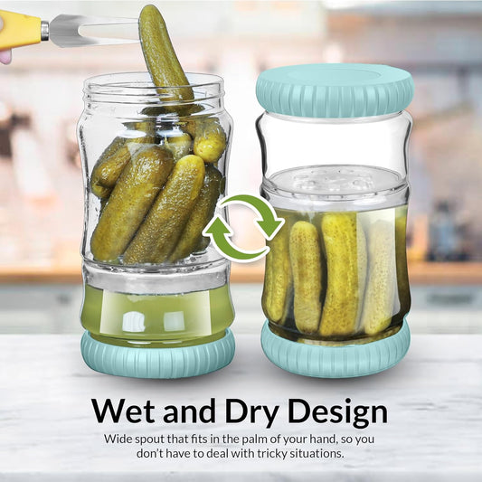 40oz Glass Pickle Jar with Strainer Flip - Pickle Storage Container with Airtight Lid, BPA-Free, Dishwasher Safe, Fermentation Hourglass Jar for Kimchi, Olives, Jalapeno, Gherkins (Blue)