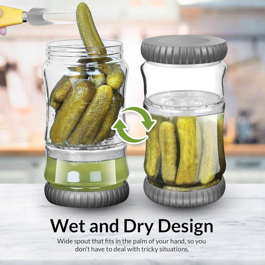 40oz Glass Pickle Jar with Strainer Flip - Pickle Storage Container with Airtight Lid, BPA-Free, Dishwasher Safe, Fermentation Hourglass Jar for Kimchi, Olives, Jalapeno, Gherkins (Dark Gray)