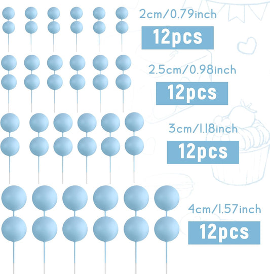 48 Pcs Balls Cake Topper Decorations Balloon Cupcake Toppers Foam Cake Topper Balls Cake Balls Decorations for Birthday Party Wedding Anniversary Cake Decorating (Light Blue)