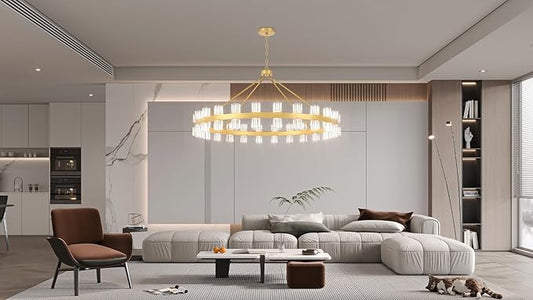 48 Inch Gold Wagon Wheel Chandelier with Crystal Shade, 48 Lights, Modern Farmhouse Style, Ideal for Dining Room, Kitchen, Entryways