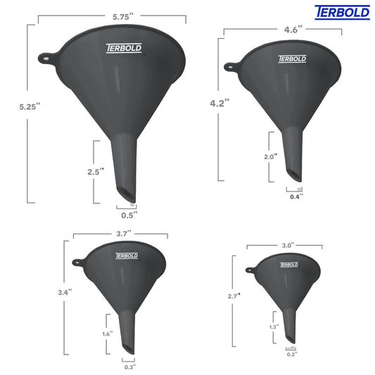 4pc Funnel Nesting Set in BPA Free Plastic for Kitchen Cooking, Car Oil, Home, or Lab Use (Black)