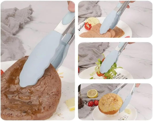 4Pcs Silicone Tongs, Kitchen Tongs 7” Non-slip & Easy Grip Stainless Steel Handle - Smart Locking Clip - Heat Resistant, Food Grade