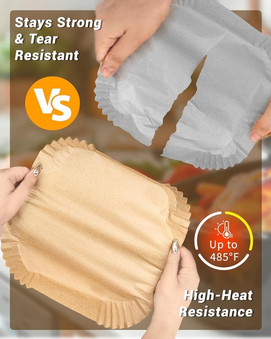 500Pcs Air Fryer Paper Liners, 8” Square Disposable Parchment Paper Liner for 5-8 QT Air Fryer, Non-Stick, Oil Proof Unbleached Airfryer for Baking, Roasting Microwave