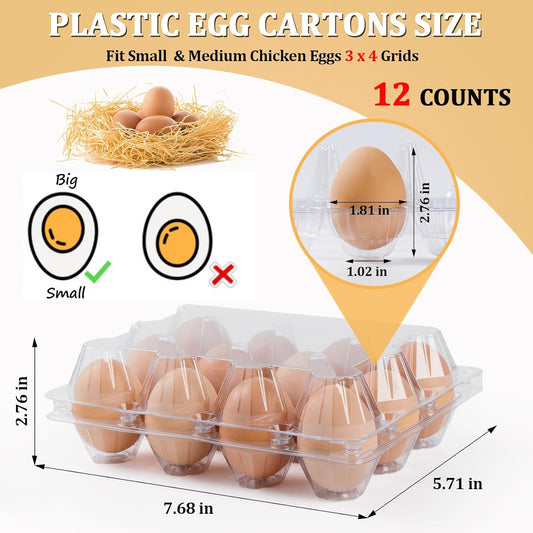 60 Pack Plastic Egg Cartons Cheap Bulk, One Dozen Clear Empty Egg Cartons for Chicken Egg, Reusable Egg Carton for Home Ranch Chicken Farm, Commercial Business Market Display,3x4Grids