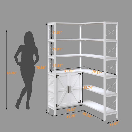 6-Shelf Corner Bookshelf, Vintage Industrial Corner Shelf Etagere Bookcase, Large Book Shelf with Metal Frame Open Storage Corner Cabinet (White-Lockers, Large)