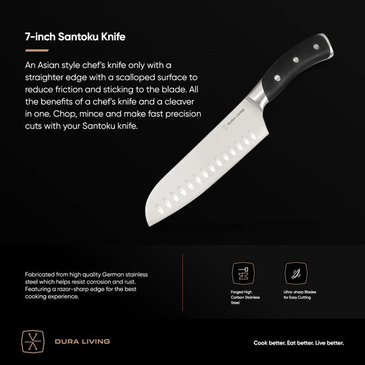 7-Inch Santoku Knife – Ultra-Sharp German High Carbon Stainless Steel, Full Tang, Ergonomic Handle, Multipurpose Kitchen Knife for Chopping, Slicing, and Dicing, Black