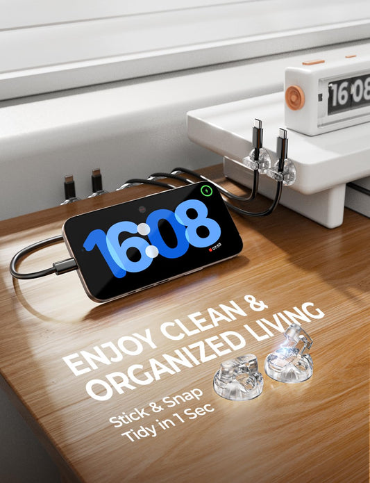 8-Pack Magnetic Cable Clips [1S Snap-On] Cord Holder, LISEN Desk Organizers and Accessories with 4 Extra Strong Adhesive Pads, Wire Organizer for Nightstand, Home, Wall, Car, Desktop,Transparent