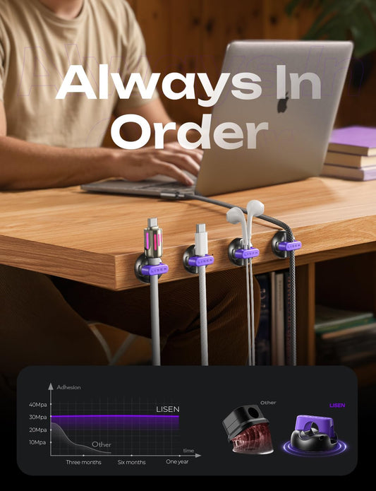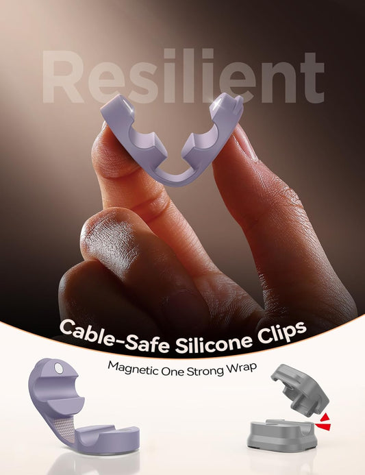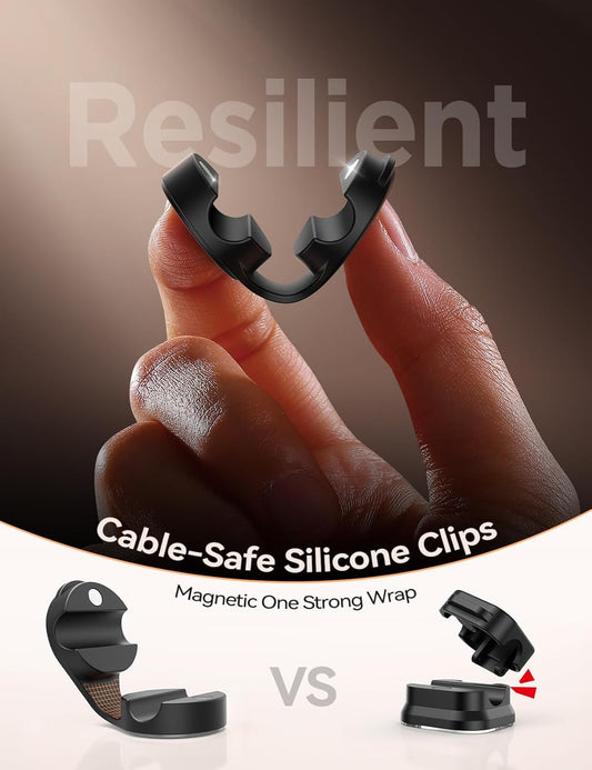 8-Pack Cord Organizer Magnetic Silicone Cable Clips[8 mm Wider Cable Accessible]Desk Cable Management, FLYLEAD Desktop Cord Holder for Nightstand, Office Workspaces Desk Organization Home Accessories
