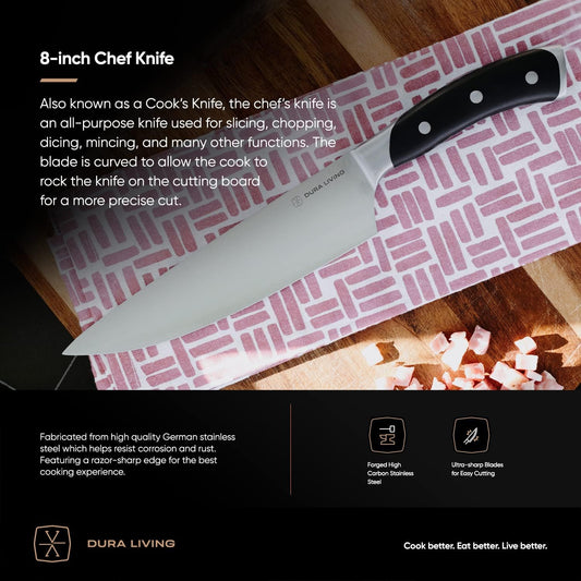 8-Inch Chef Knife – Ultra-Sharp German High Carbon Stainless Steel, Full Tang, Ergonomic Handle, Multipurpose Kitchen Knife for Chopping, Slicing, and Dicing, Black
