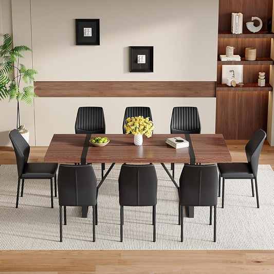 86.6" Dining Table Set for 8, Modern 9 Piece Wood Kitchen Table and Chairs Set, Rectangle Dining Room Table with 8 PU Leather Upholstered Chairs, Ideal for Home, Kitchen, or Apartment Dining