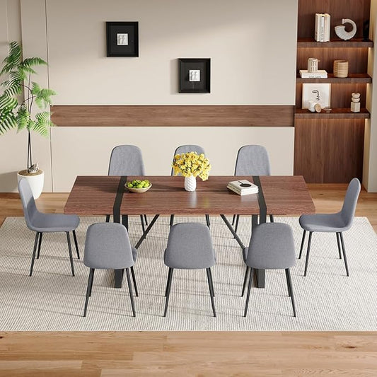 86.6" Dining Table Set for 8, Modern 9 Piece Wood Kitchen Table and Chairs Set, Rectangle Dining Room Table with 8 Linen Fabric Upholstered Chairs, Ideal for Home, Kitchen, or Apartment Dining