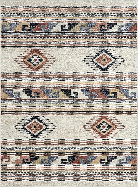 Abani Multicolor Southwestern Design Area Rug - Non-Shed Orange, Grey & Beige Tribal Pattern Dining Room Carpet Rugs (6'x9')