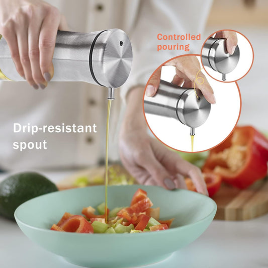 Aelga Olive Oil And Vinegar Dispenser Set -2 Pack Elegant Stainless Steel Oil Dispenser Set- Vinegar Bottle for Kitchen with No-Drip