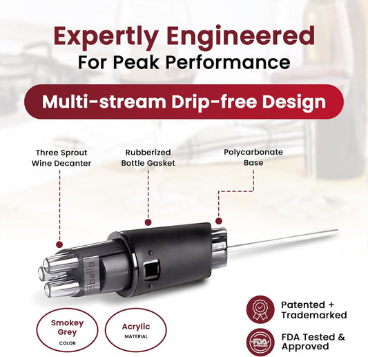 Air Speed Wine Aerator Modest Design Multi-Stream Drip Free Wine Aeration 3 Stainless Steel Spouts, Handmade Kitchen Essential Easy To Use, No-Drip valentines day gift for her in Protective Gift Case
