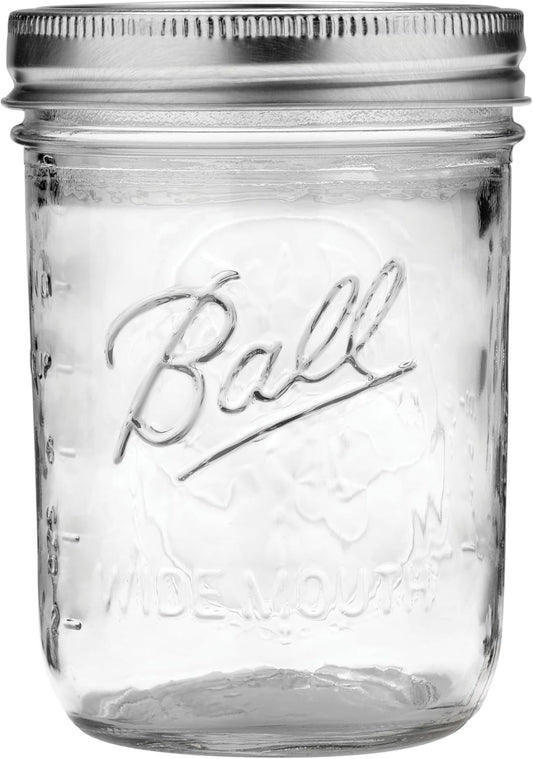 Ball Wide Mouth Pint 16-Ounce Glass Mason Jar with Lids and Bands, 12-Count