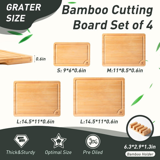 Bamboo Cutting Board Set Non Slip Feet Wood Cutting Boards for Kitchen with Juice Grooves & Built-in Handles, Ideal Charcuterie & Chopping for Meat, Vegetables and Fruits Kitchen Gift for Home Cooks