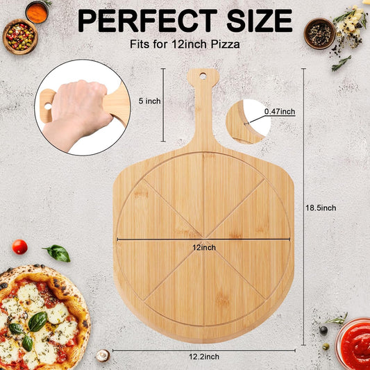 Bamboo Pizza Peel - 18.5"x12.2" with 12" Pizza Cutting Board, Pizza Paddle Spatula with 8 Slice Grooves, also fit for Cheese Bread Fruit Vegetables