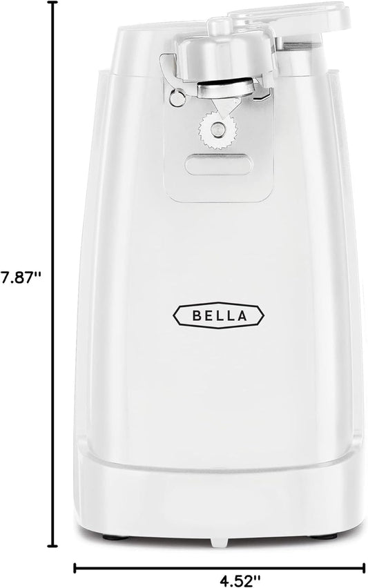BELLA Electric Can Opener and Knife Sharpener, Multifunctional Jar and Bottle Opener with Removable Cutting Lever and Cord Storage, Stainless Steel Blade, White
