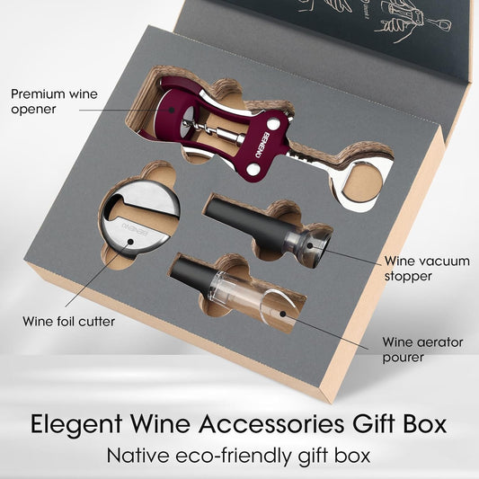Beneno Multifunctional Wine Bottle Opener Gift Set - Wing Corkscrew, Foil Cutter, Vacuum Stopper & Aerator Pourer, Perfect for Wine Lovers Man Woman, Purple Set