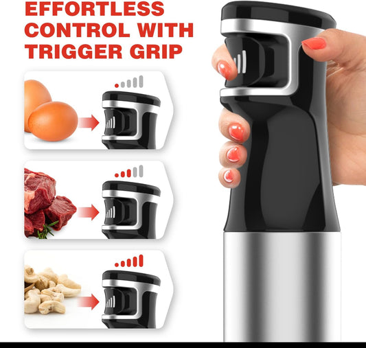 1100W Corded Hand Blender – 6-in-1 Stick Blender – Variable Speed Immersion Blender with Titanium Blades – Corded Blender with Whisk Chopper Frother Storage Holder & Silicone Cover