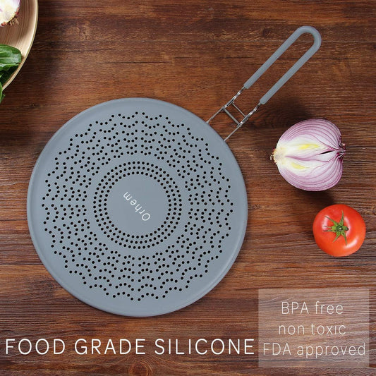 11" Silicone Splatter Screen Pan Cover with Folding Handle, Heat Insulation Cooling Mat, Strainer, Drain Board, Oil Splash Guard for Frying Pan