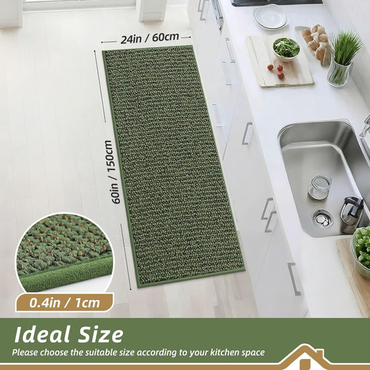 BEQHAUSE Kitchen Runner Rugs 24"x60", Non-Slip Kitchen Mats for Floor, Super Absorbent and Stain Resistant Kitchen Rug, Machine Washable Rugs for Kitchen, Hallway, Laundry & Sink, Green