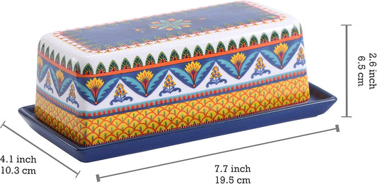 Bico Blossom Symphony Ceramic Butter Dish with Lid, Wide Butter Keeper for Counter, Kitchen Countertop, Microwave and Dishwasher Safe