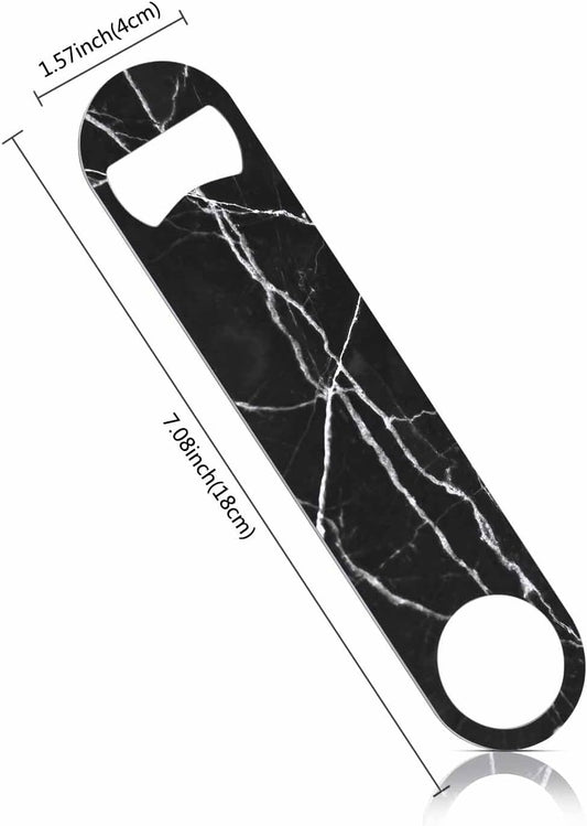 Black Marble Stainless Steel Bottle Opener Dark Texture with White Cracked Wave Art Flat Beer Bottle Opener Keychain for Home Kitchen Bar Restaurant Party Birthday Gift