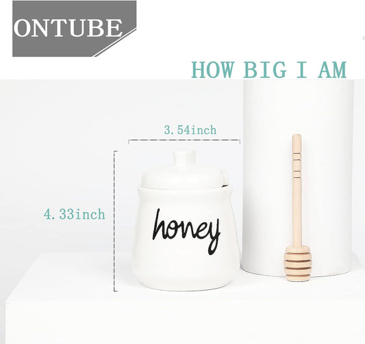 12 oz Honey Jar with Dipper and Lid, Ceramic Honey Pot, White