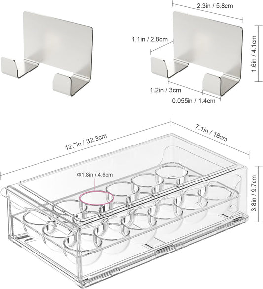 BPA Free Stackable Egg Container - 18 Egg Refrigerator Organizer with 2 Kitchen Hooks, Clear
