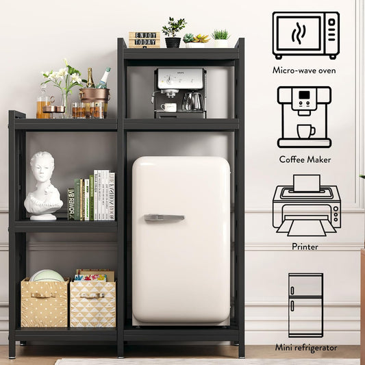 BRIGHTSHOW Kitchen Storage Shelf Bakers Rack, 6-Tier Coffee Bar Table, Kitchen Microwave & Mini Fridge Stand Shelves for Spices, Pots and Pans (52 x 40 x 17.5inch) (Black Wooden no Wheels)