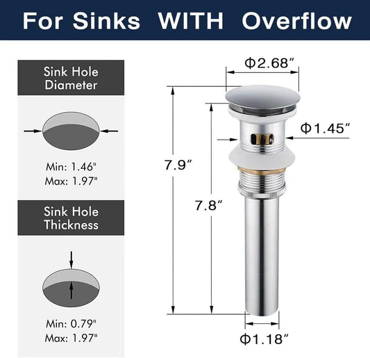 Brushed Nickel Stainless Steel Pop up Drain for Bathroom Sink with Detachable Basket Bathroom Sink Drain with Overflow Sink Drain Strainer