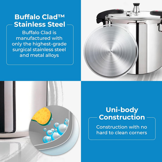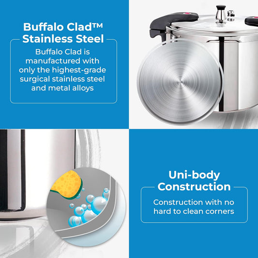 Buffalo Pressure Cooker 21 Qt Stainless Steel - Large Canning Pot with Lid for Home, Commercial Use - Easy to Clean Any Stove Top Pressure Canner, Can Cooker - SG Certificate QCP420