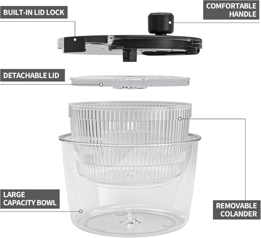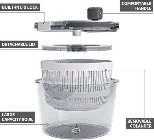 Cambom Salad Spinner Lettuce Spinner, Wash, Spin & Dry Salad Greens, Vegetable Washer Salad Dryer With Rotary Handle for Fruits & Vegetables, High Efficiency Vegetable Spinner Kitchen Gadget 3Qt White