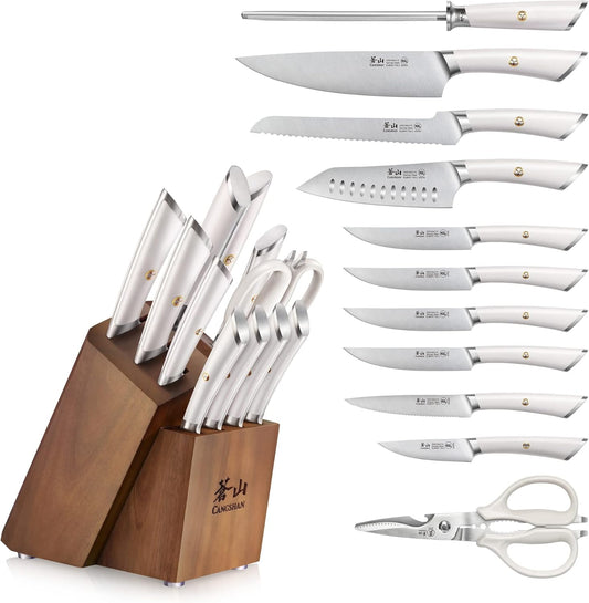 Cangshan Alps Series German Steel Forged 17-Piece Knife Block Set, Acacia (White)