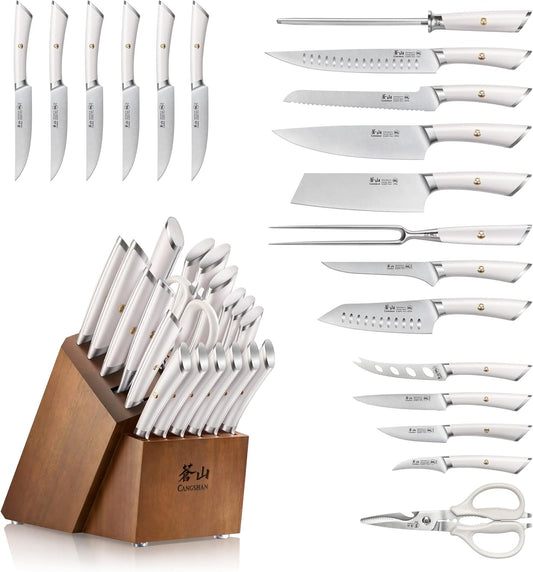 Cangshan ELBERT Series German Steel Forged Knife Block Sets (20-Piece, White)