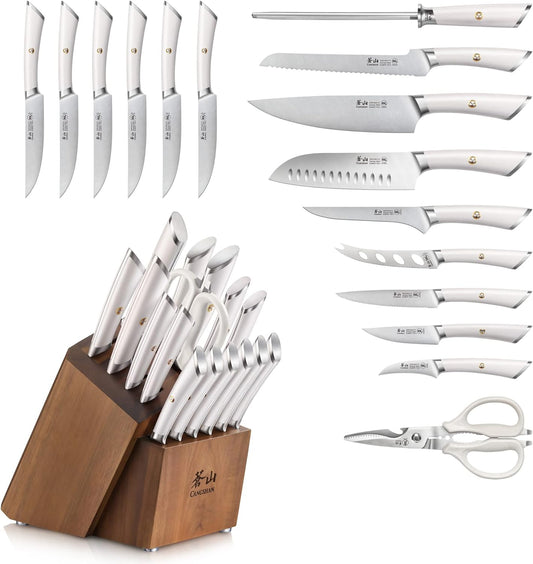 Cangshan ELBERT Series German Steel Forged Knife Block Sets (17-Piece, White)