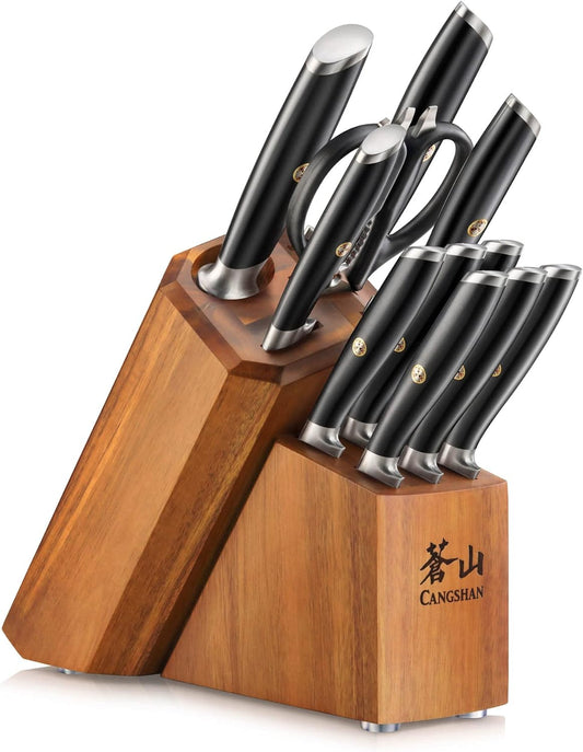 Cangshan Alps Series German Steel Forged 17-Piece Knife Block Set, Acacia (Black)