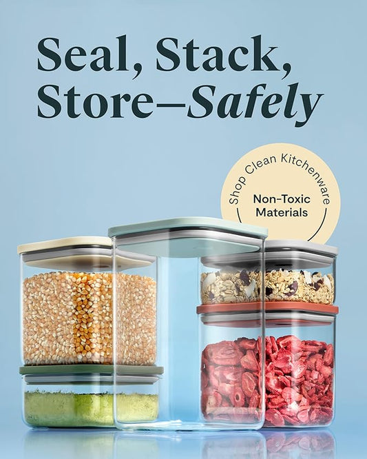 Caraway 14-Piece Glass Airtight Food Storage Containers with Lids – Non-Toxic, BPA-Free Kitchen Storage Containers – Stackable, Space-Saving Airtight Containers for Dry Goods and More - Sage