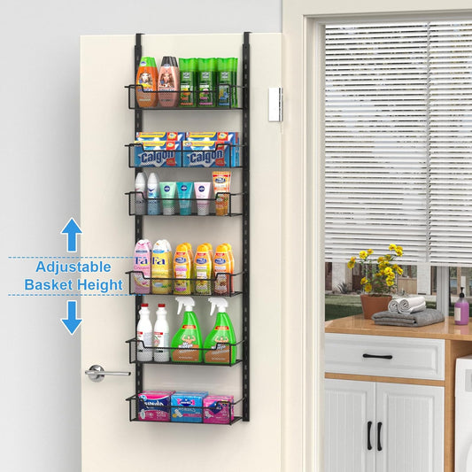 12.3" W Narrow Over the Door Pantry Organizer, 6-Tier Over the Door Organizer with Adjustable Basket, Pantry Door Organization for Pantry Kitchen Storage Room Spice Rack, Black