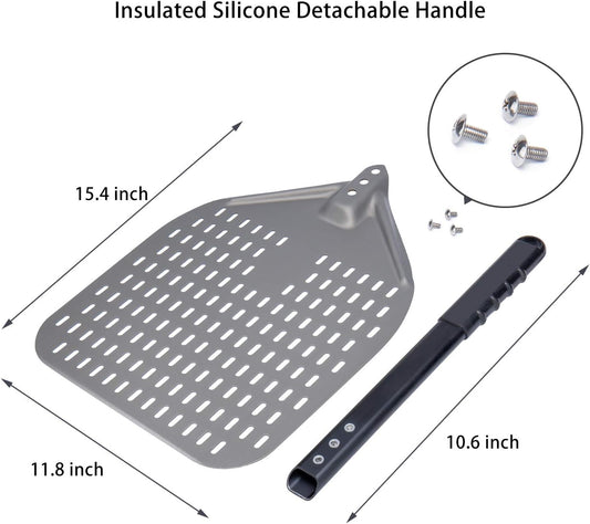 12-Inch Perforated Pizza Peel: Hard Anodized Aluminum Pizza Spatula with Silicone Handle, Professional Large Pizza Turning Peel, Pizza Paddle, 26-Inch Overall