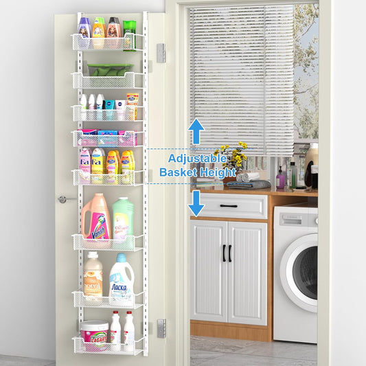 12.3" W Narrow Over the Door Pantry Organizer, 8-Tier Over the Door Organizer with Adjustable Basket, Pantry Door Organization for Pantry Kitchen Storage Room Spice Rack, White